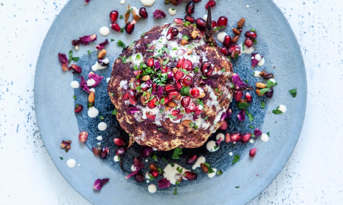 Spiced Cauliflower Shawarma With Pomegranate And Pistachio Recipe Spiced Cauliflower Meat Free Recipes Sainsburys Recipes